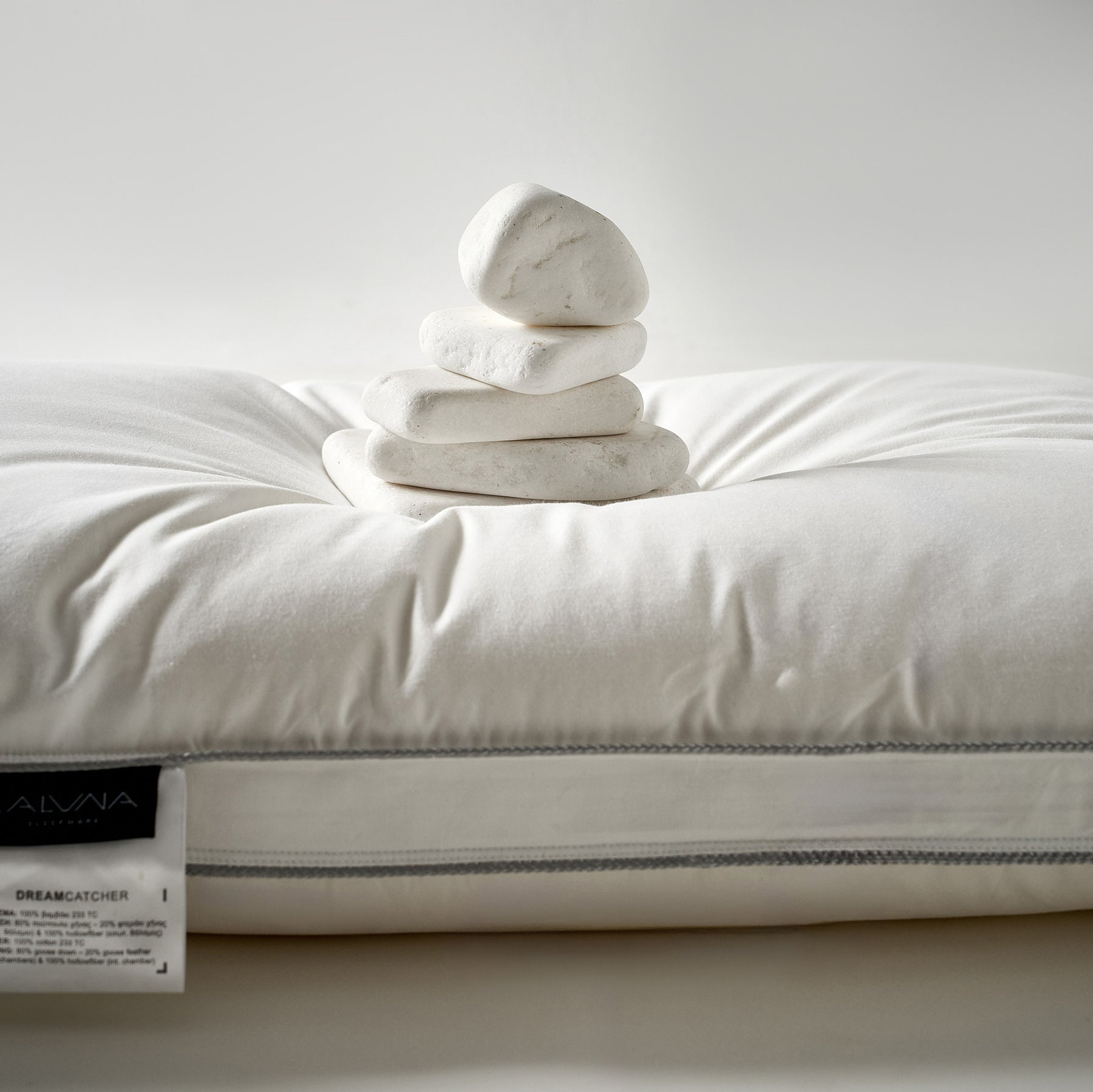 Ειδικά διαχωρισμένο πουπουλένιο μαξιλάρι χήνας σε 3 θαλάμους με ειδική αντιαλλεργική επεξεργασία. Ένα μέτριου ύψους μαξιλάρι με μαλακή υποστήριξη για εσάς που προτιμάτε να κοιμάστε μπρούμυτα ή ανάσκελα.